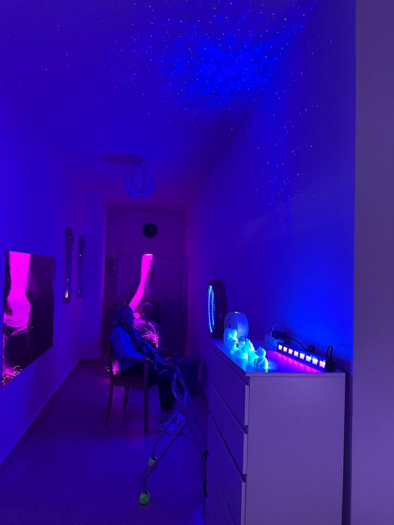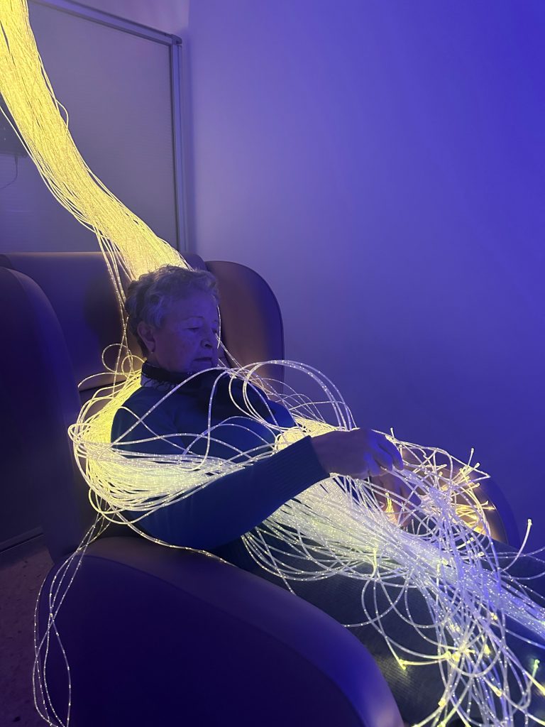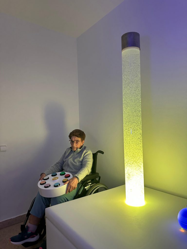 «Una Sala de Estimulación Multisensorial es una de las herramientas para trabajar con personas que presentan deterioro cognitivo moderado o grave. Permitiría crear un entorno accesible física y cognitivamente, dotado de elementos que proporcionan estímulos y provocan el despertar de los sentidos favoreciendo la comprensión del medio y de uno mismo e invita a la exploración. Con ello buscamos otra forma de abordar la persona discapacitada, consiguiendo evoluciones altamente positivas a través de la relajación y la estimulación multisensorial. La sala es un entorno seguro y agradable. Se ha demostrado que se reducen las conductas disruptivas, es un lugar donde los usuarios quieren volver y también los profesionales se sienten más cómodos y más cercanos al usuario.